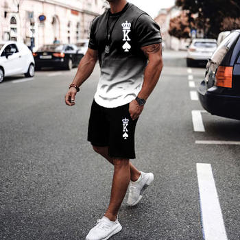 Ensembles de shorts College 3D pour hommes, survĂȘtement d'entraĂźnement, t-shirt imbibĂ©, pantalon de sport, course Ă pied, loisirs, jogging, poker