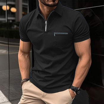 Offre spéciale été mode hommes décontracté poches fermeture éclair à manches courtes Polo chemise bureau revers T-Shirt respirant Polo S-3XL