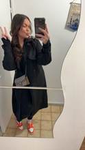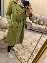 Magnifique trench. Matière très fine mais très douce. Taille très bien, j’ai pris du L au lieu du M pour pouvoir mettre des pulls en dessous c’est parfait.